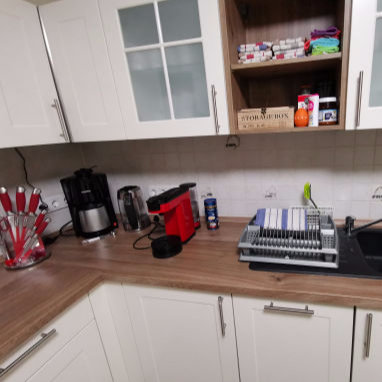 Ein Telefon und ein WLan-Router befindet sich auch in der Küche.