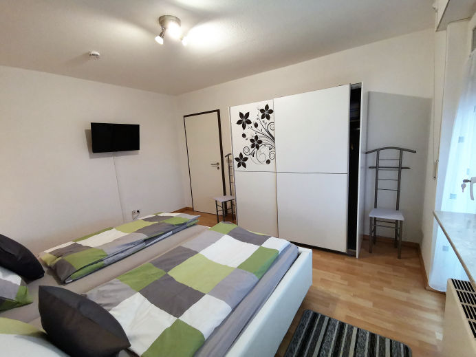 in einem der drei Schlafzimmer. Es finden sich Schlafmöglichkeiten für bis zu 6 Personen in dem Ferienhaus. Aufgeteilt in 2 große Schlafzimmer mit Doppelbett und einem kleinen Kinderschlafzimmer mit 2 Einzelbetten.